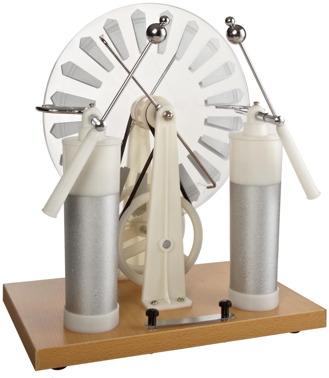 | Wimshurst machine by American Educational Products - a static electricity generator - seen on the shelves behind the couch |
