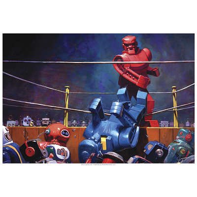 The Final Blow by Eric Joyner Some people call this the "Rock Em Sock Em" poster. Replaces a different poster, of a telescope, located in the living room on closet door. |
