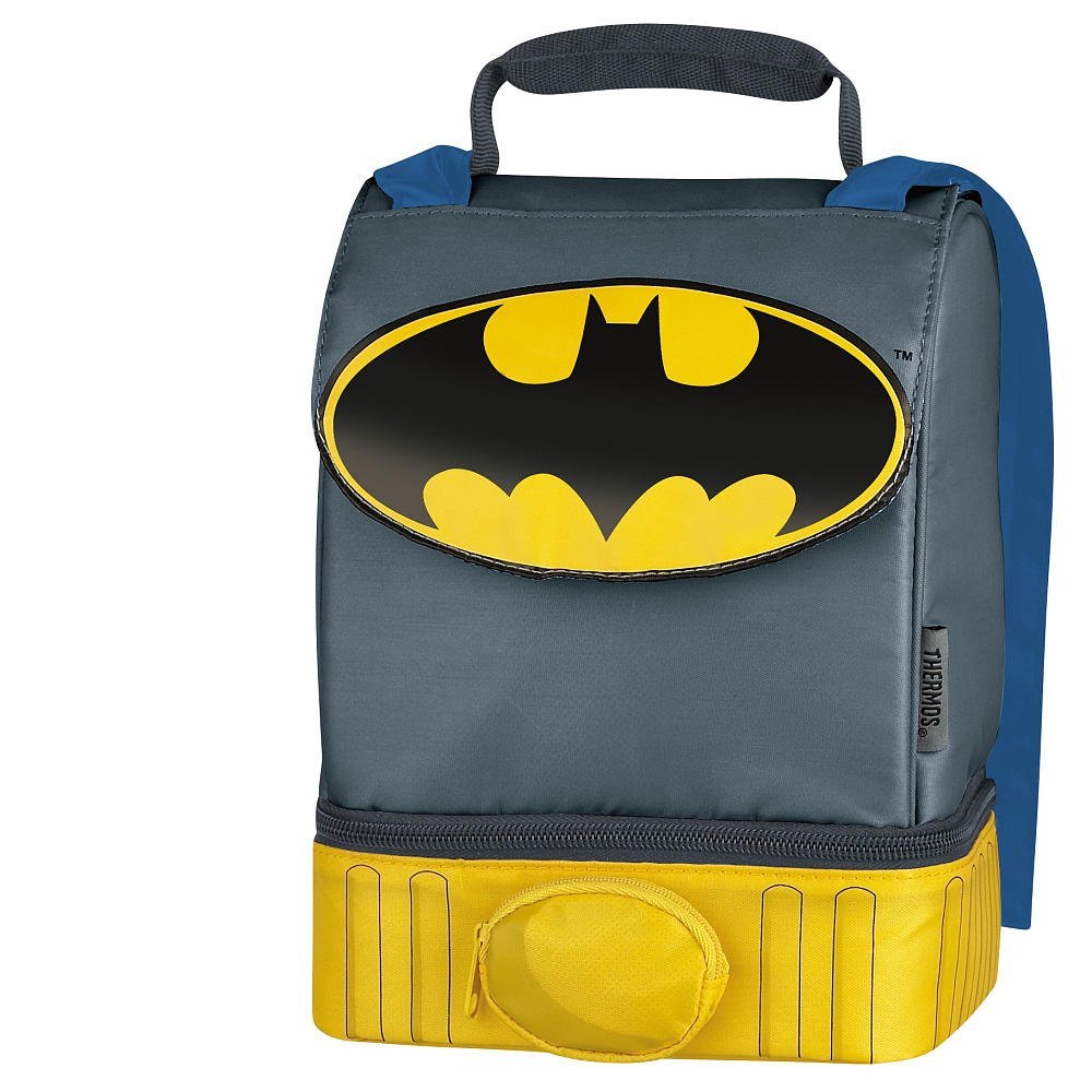 Batman Lunch Kit with Cape The authentic one is a hard to find collectible. Expect to pay $75 or more for one in good shape or $30 to $40 used with broken zipper, etc. A cheaper, similar option is the Batman lunch sack for around $30