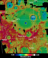 Digital terrain model from the MESSENGER mission. Appears on the blackboard organizer on the side of the fridge starting in S5 E21. |