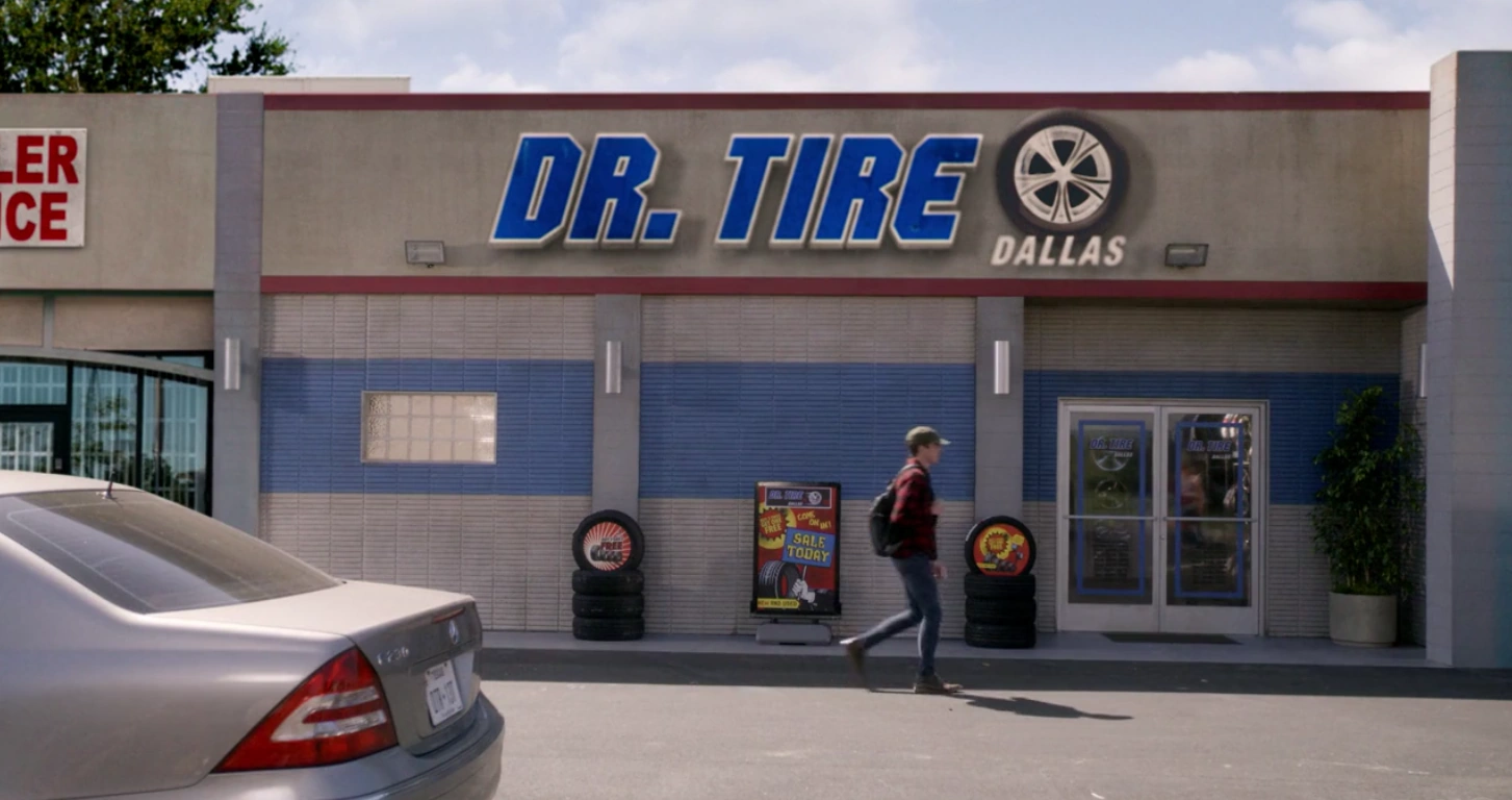 The "Dr. Tire Store" is owned by Sheldon's brother George and his chain is the biggest supplier of tires in the state of Texas. They also offer custom rims. He runs his business from one of his stores, and not the only local store, in Dallas. Sheldon visited it to ask George to come to his wedding.