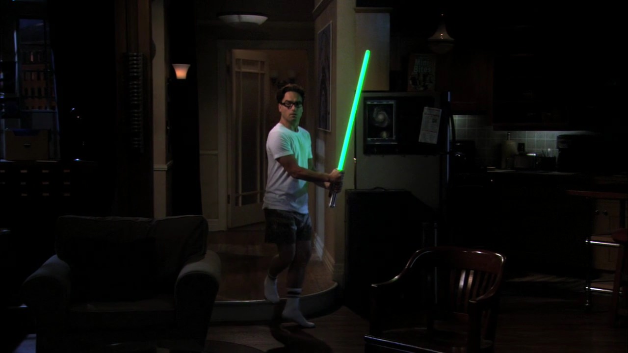 Despite his attempts to reject his geek status, Leonard owns, among other things, Star Wars hygiene products, an expensive Superman comic book collection, a "Battlestar Galactica" Colonial warrior's flight suit, and a light saber that he calls a "glow stick".