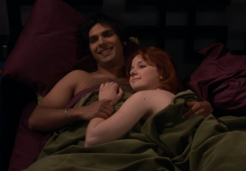 In "The Skank Reflex Analysis", Raj reveals to Penny that they didn't actually sleep together and just fell asleep. Raj suggests that they do Howard and Bernadette's Wedding on the roof since he knows that as an astrophysicist that there is a satellite above Pasadena, so it can photograph the ceremony from space ("The Countdown Reflection").