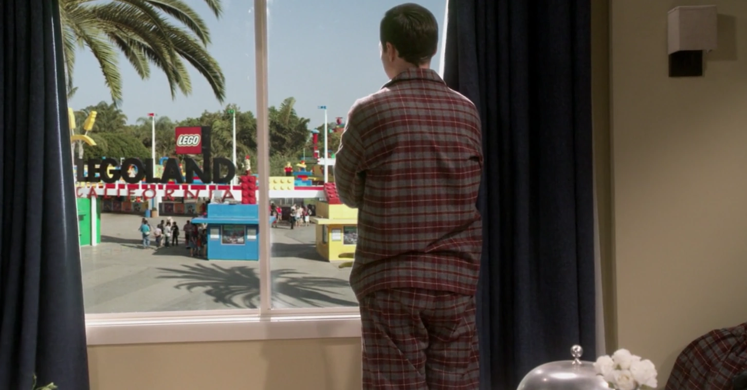 - (Sheldon opens the curtains, revealing LEGOLAND California outside.)