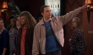 He meets up with his friends in the Avengers movie screening line, right in front of the guys. Despite the fact that Leonard, Raj, and Howard have no problem with this, Sheldon does, and he proceeds to confront Trevor for his actions. Trevor points out that his friends saved him a spot in line and that it's cool, but Sheldon protests to this, telling him to go to the back of the line. Trevor appears to be sympathetic towards Leonard, knowing how frustrating Sheldon can be.